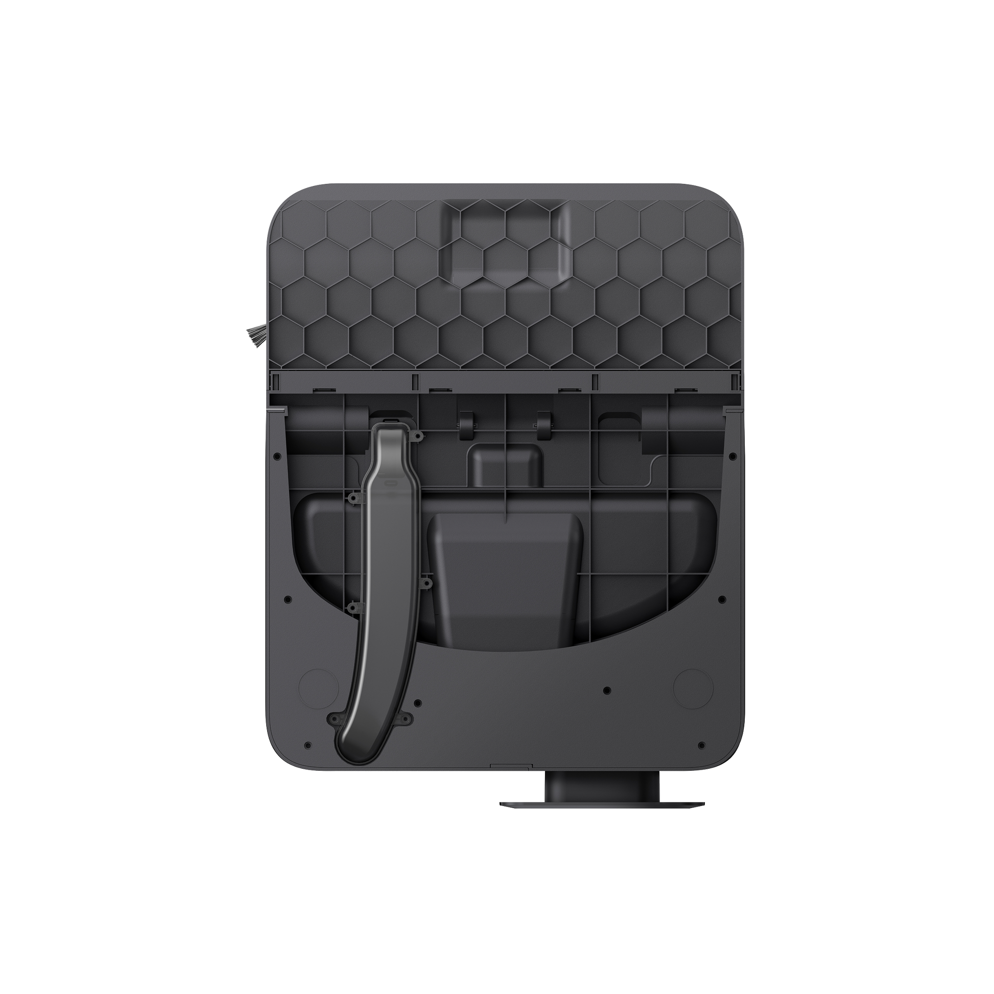 - DuoSpiral™ 雙旋防纏伸縮滾刷:清掃時滾刷閉合旋轉達到零縫隙、零漏掃,並透過氣旋原理集中毛髮至縫隙完整回收,解放雙手零污染。